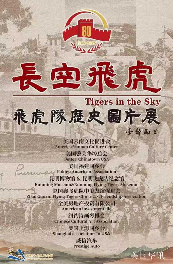 近日,由昆明市博物馆(昆明飞虎队纪念馆)与美国云南文化促进会、美国繁荣华埠总会、美国福建同乡会、赵国鑫飞虎队中美友谊促进会、美国上海同乡会等多家机构联合主办的“长空飞虎——飞虎队历史图片展”在美国纽约法拉盛君豪大酒楼隆重开幕。本次展览共展出由我馆提供的51块珍贵历史图片与文献展板,生动再现了抗战时期飞虎队与中国军民共同抗击日寇的英勇事迹和深厚友谊。