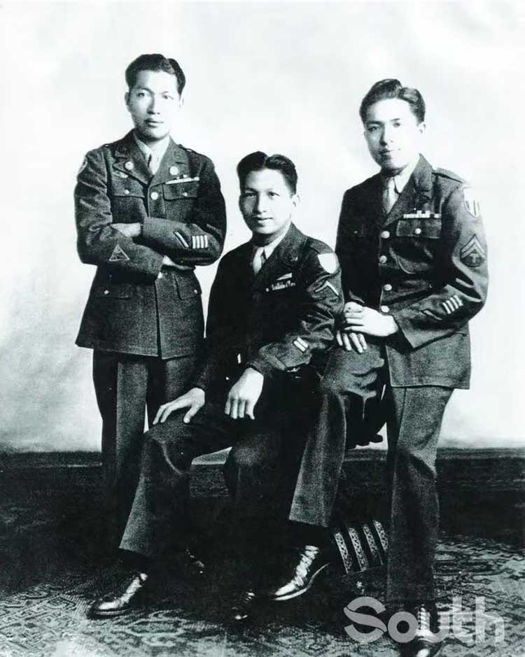 余氏兄弟包括余新振(左,飞虎队员)、余新琼、余新伦(右,飞虎队员)